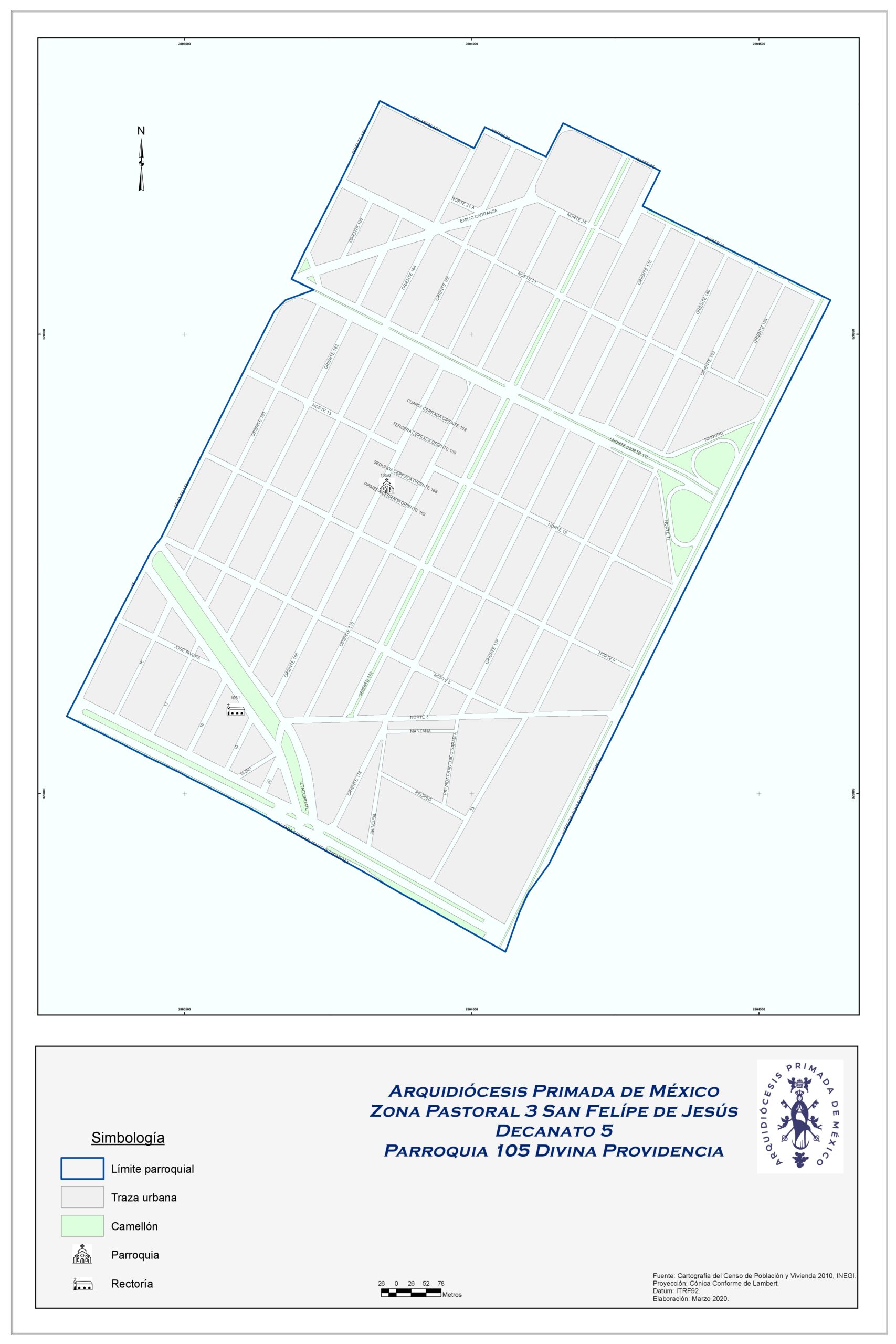 La sede litúrgica de la III Zona Pastoral “San Felipe de Jesús” es la parroquia de Nuestra Sra. de San Juan de los Lagos, colonia veinte de noviembre, Venustiano Carranza. Tiene como vicario episcopal a Mons. Salvador Martínez Ávila, quien tomó posesión el 22 de julio de 2024.